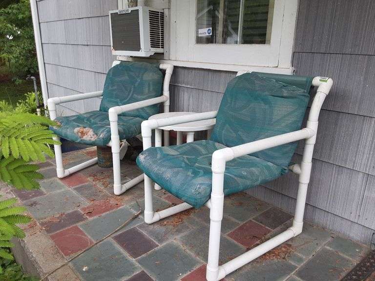 LOT 402 - (2) PVC Outdoor Chairs & Round Table