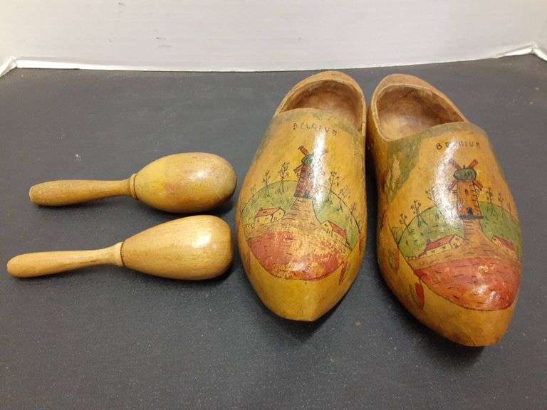 LOT 1174 - Belgium Wooden Clogs & Sock Stretchers