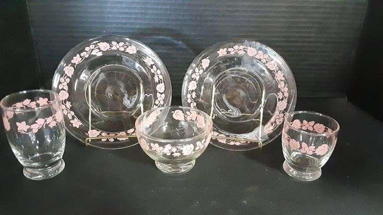LOT 1553 - (5) Pink Floral Motif Glassware