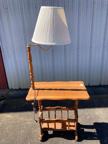 LOT 112 - Side Table w/ Newspaper Rack and Lamp