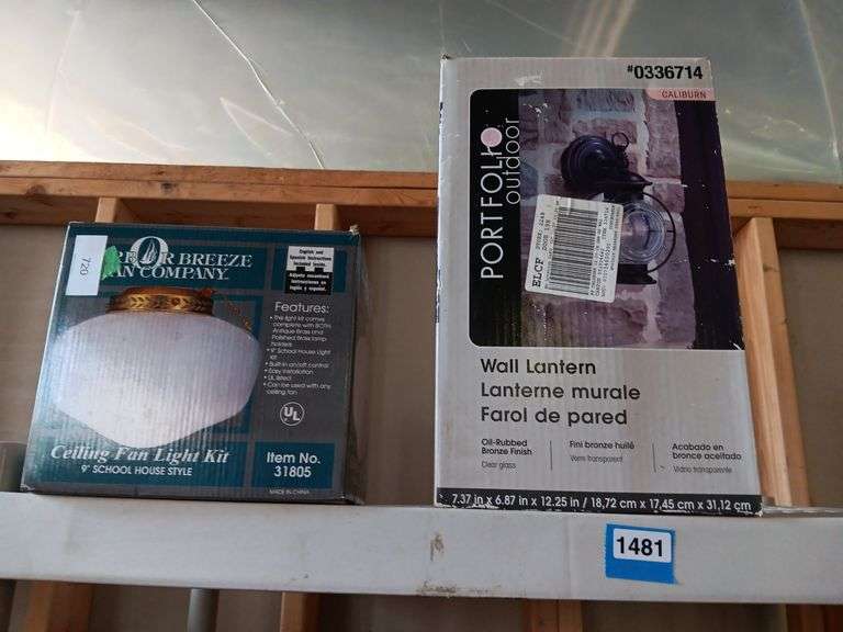 LOT 1481 - Harbor Breeze 9" Ceiling Fan Light & Portfolio Outdoor Wall Lantern
