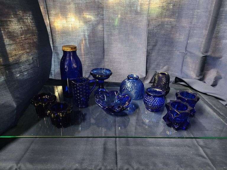 LOT 1633 - Assortment of Cobalt Glass Decor Items