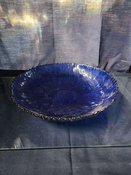 LOT 1634 - Cobalt Glass Bowl (Tree Bark Look)