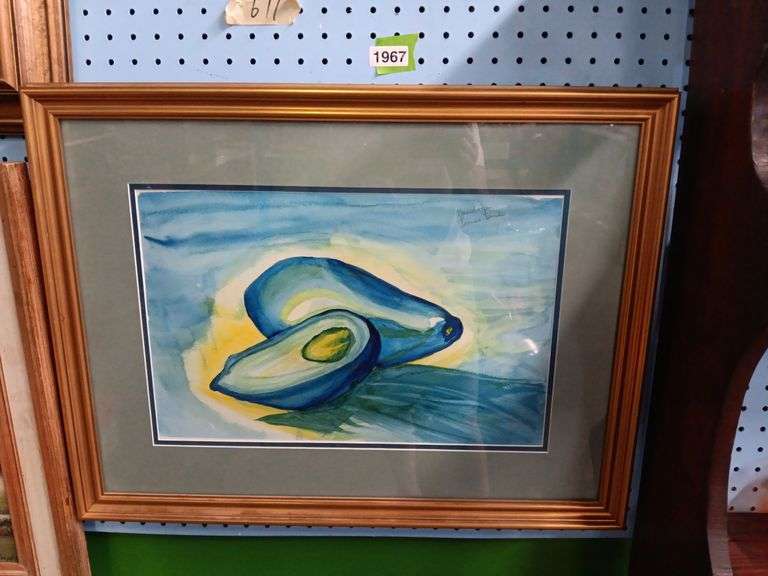 LOT 1967 - Framed Avocado Watercolor Sign Illegibly