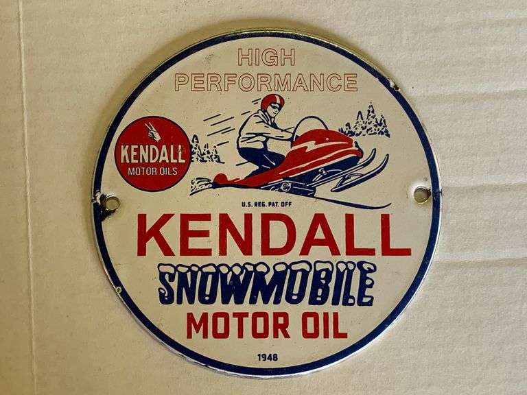 LOT 1808 - 6" Kendall Snowmobile Motor Oil Porcelain Sign (One Sided Reproduction)