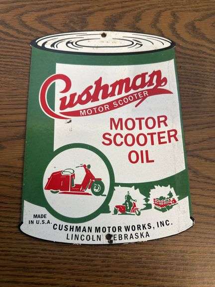 LOT 1822 - 11" Cushman Motor Scooter Oil Porcelain Sign (One sided reproduction)