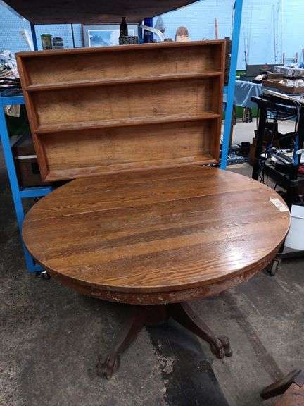 LOT 84 - Round Wood Table w/ Knick Knack Shelf