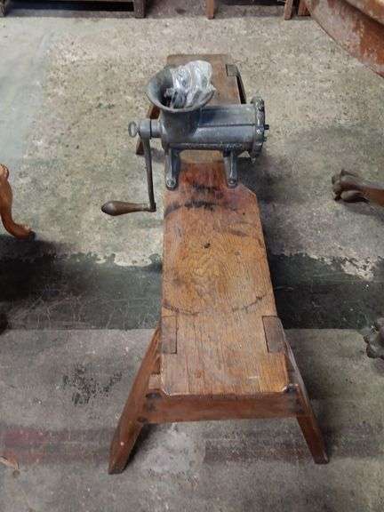LOT 86 - Enterprise Meat Grinder w/ Wood Bench
