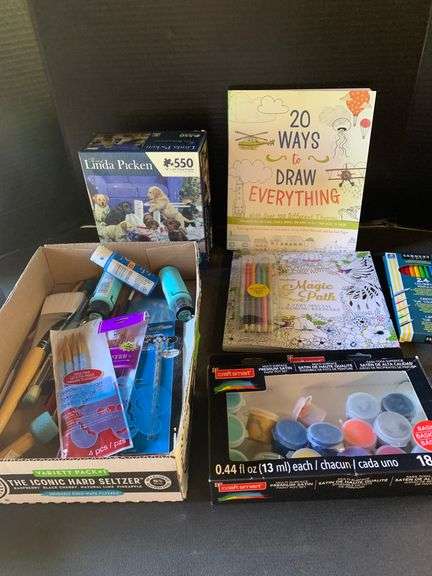 LOT 293 - Puzzle, Drawing Book, Coloring Book, Paint, and Paint Brushes