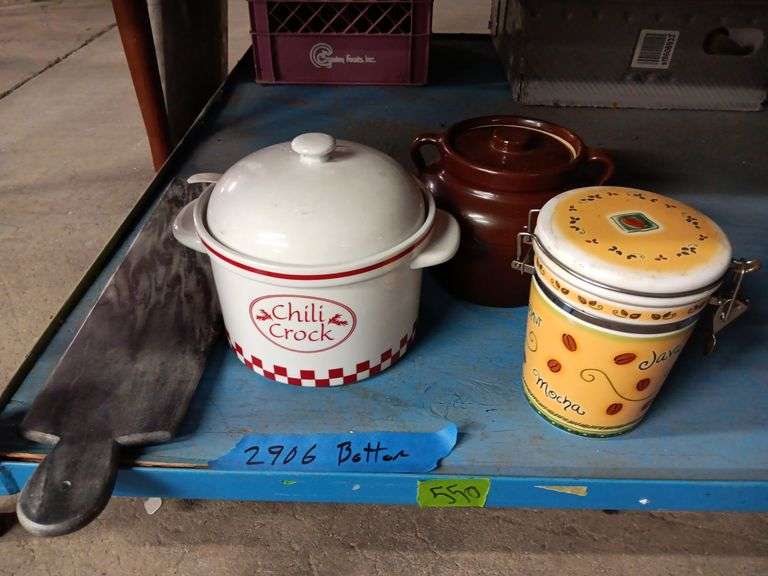 LOT 550 - Chili Crock, Canister, Crock, and Cheese Stone
