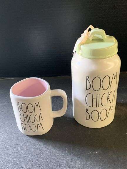LOT 18 - Rae Dunn Boom Chicka Boom Lidded Jar and Coffee Mug
