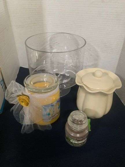 LOT 168 - Etched Glass Trifle Dish and Candles