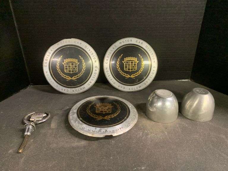 LOT 225 - Cadillac Center Caps and Hood Ornament