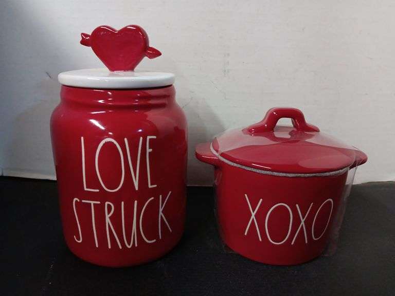 LOT 318 - Rae Dunn Love Struck Canister and Small Lidded Crock