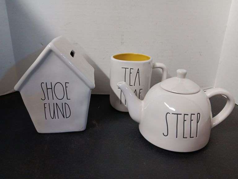 LOT 333 - Rae Dunn Steep Teapot and Tea Time Mug
