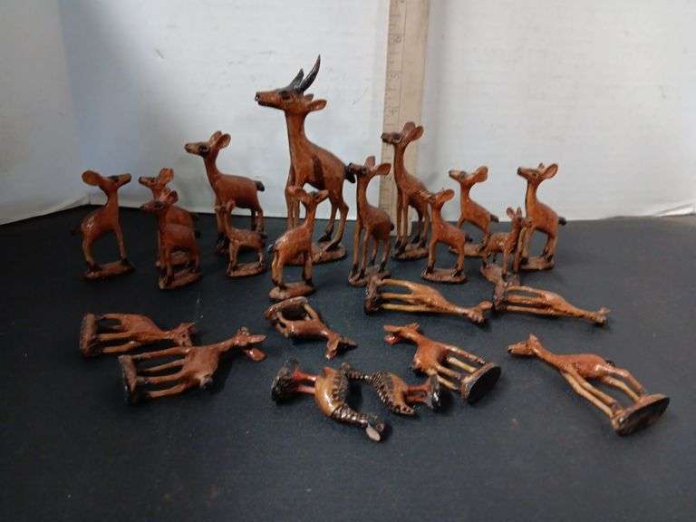 LOT 367 - Carved Wood Deer/Antelope and Birds