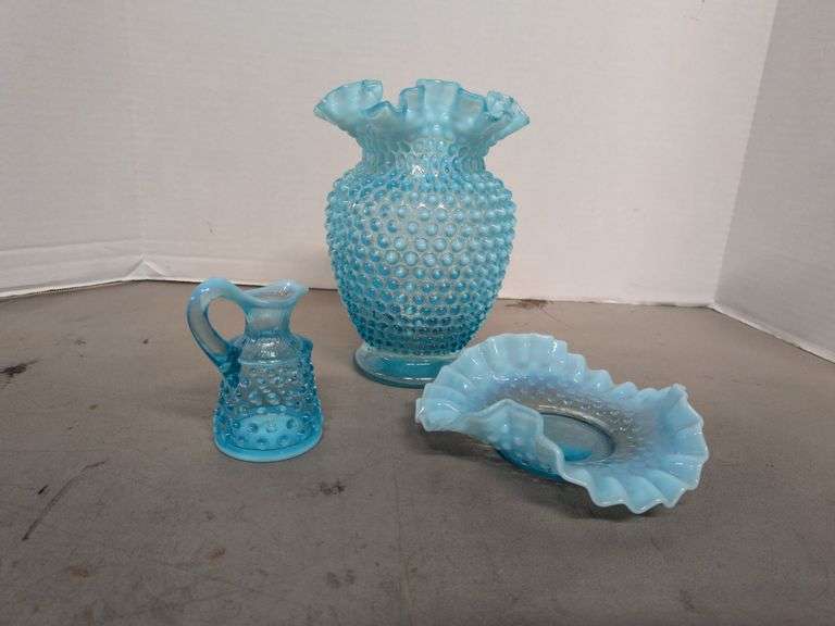 LOT 729 - Fenton Style Hobnail Vases and Dish