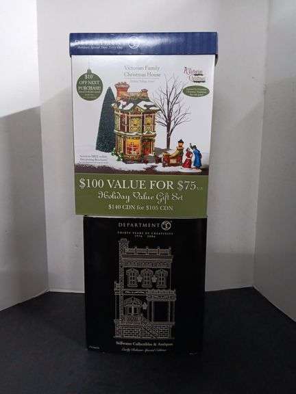 LOT 305 - Dept 56 Victorian Family Christmas House and Dept 56 Still Water Collectibles and Antiques