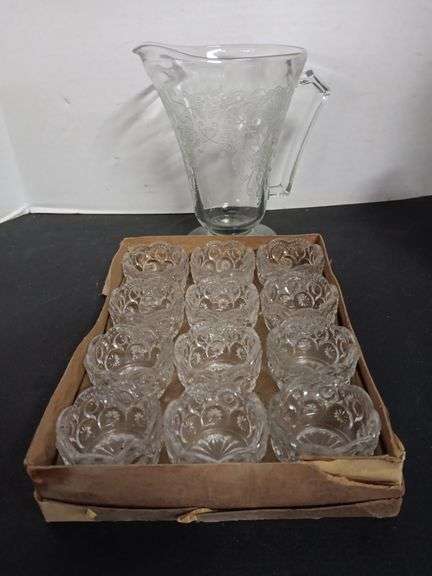 LOT 442 - Etched Glass Pitcher and (12) Cut Glass Salt Cellars