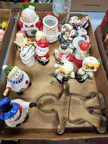 LOT 663 - Vintage Christmas Salt & Pepper Shakers, Santa & Mrs. Cream and Sugar Set, Cookie Cutter, and More