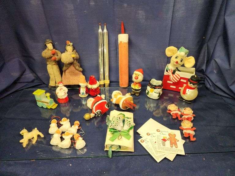 Mercury Glass Taper Candles, Felt Candle, Santa Bobble Head, Bowling Santa, and More