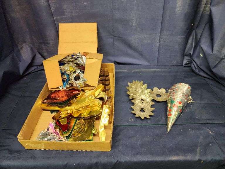 LOT 679 - Vintage Punched Metal Christmas Light Reflectors, Vintage Foil Candy Containers, Foil Reflectors, an