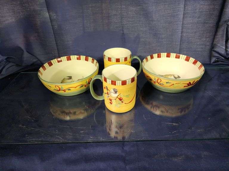 LOT 693 - (2) Lenox Chickadee Mugs and (2) Lenox Chickadee Bowls
